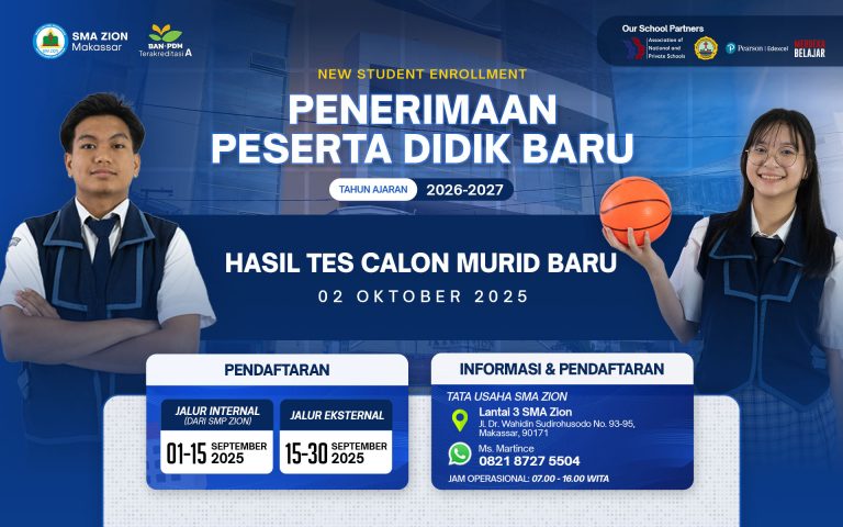 PPDB SMA ZION 2026/2027 RESMI DIBUKA📢‼️ SMA Zion Makassar kembali membuka Penerimaan Peserta Didik Baru untuk Tahun Ajaran 2026–2027! Dengan pilihan kelas Immersion & Regular,…