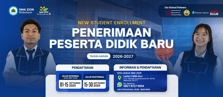 PPDB SMA ZION 2026/2027 RESMI DIBUKA📢‼️ SMA Zion Makassar kembali membuka Penerimaan Peserta Didik Baru untuk Tahun Ajaran 2026–2027! Dengan pilihan kelas Immersion & Regular,…